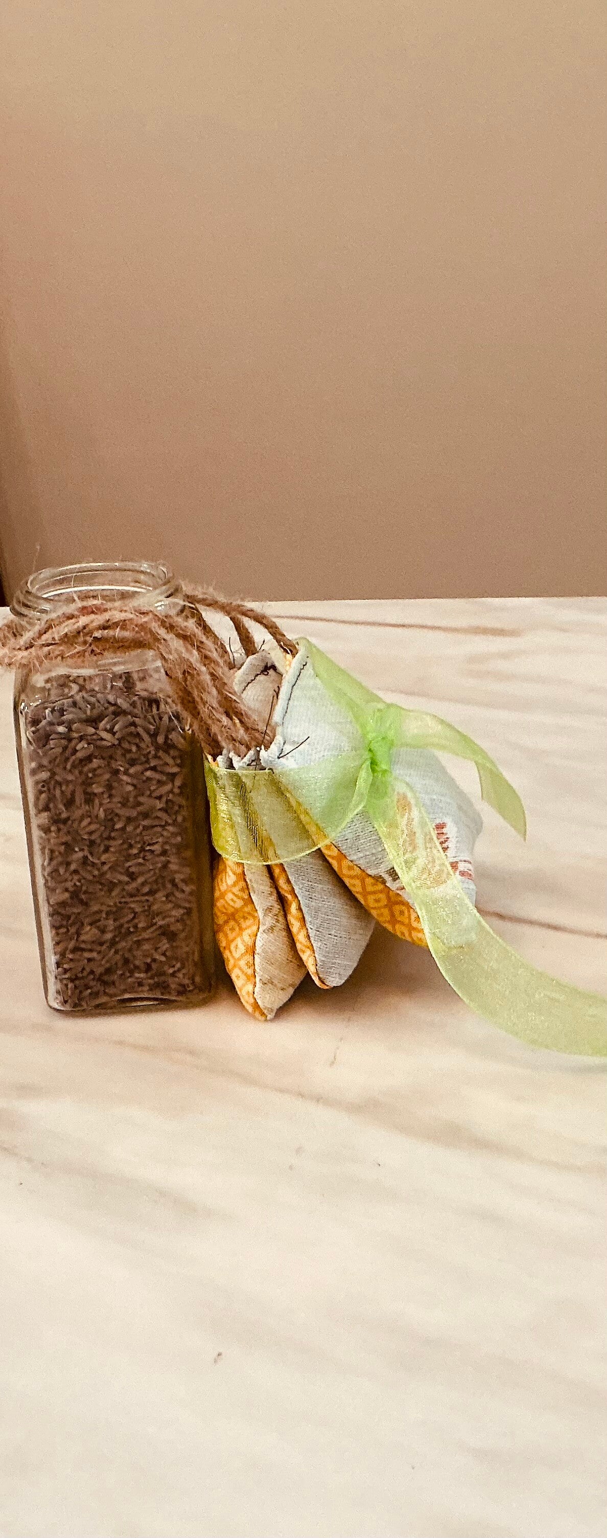 Third set of 4, produced from rescued lavendar buds and repurposed cotton fabric.